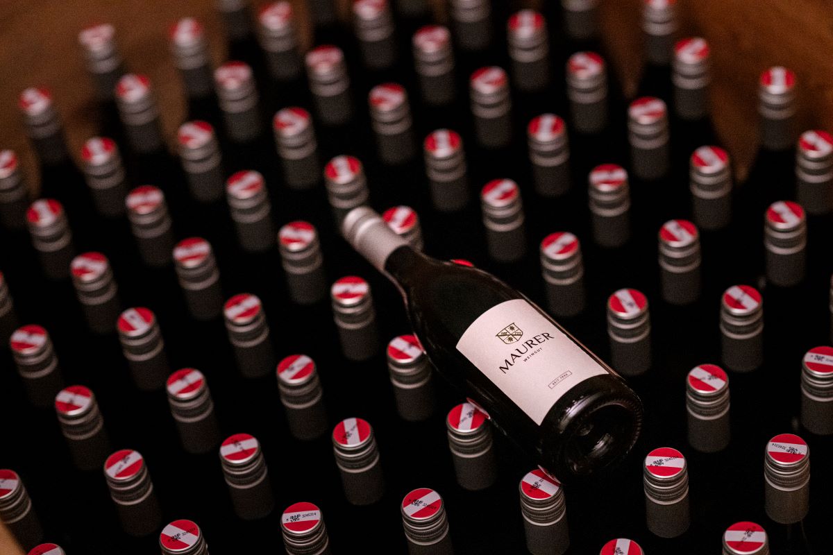 Von den sonnigen Hängen des Hohenbergs in Gleisdorf direkt in Maurers Flaschen – und damit in den mehr als 300 Jahre alten Gewölbekeller des Weinguts. Dort lagern die köstlichen Mau-